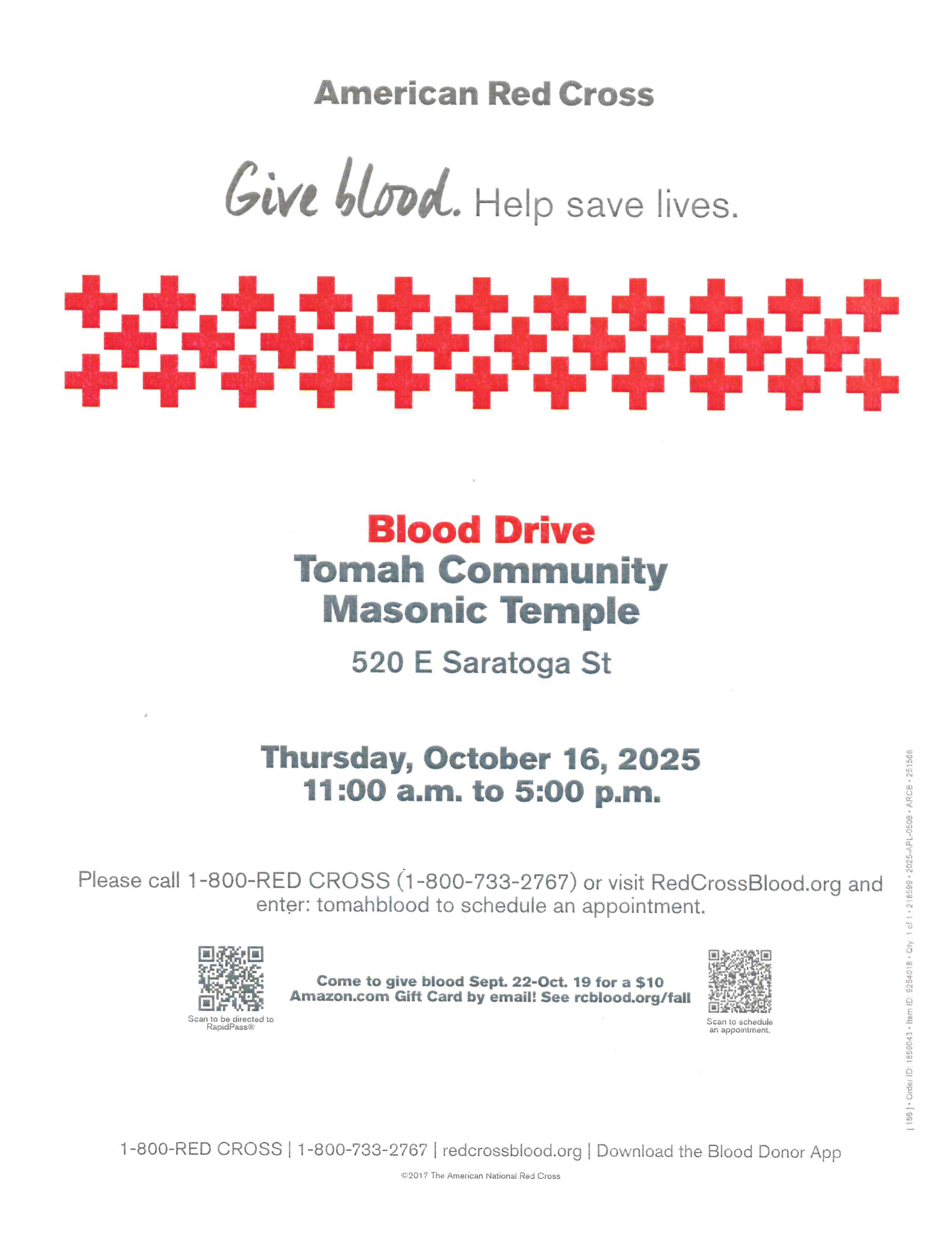 American Red Cross Blood Drive – Tomah Community Masonic Temple