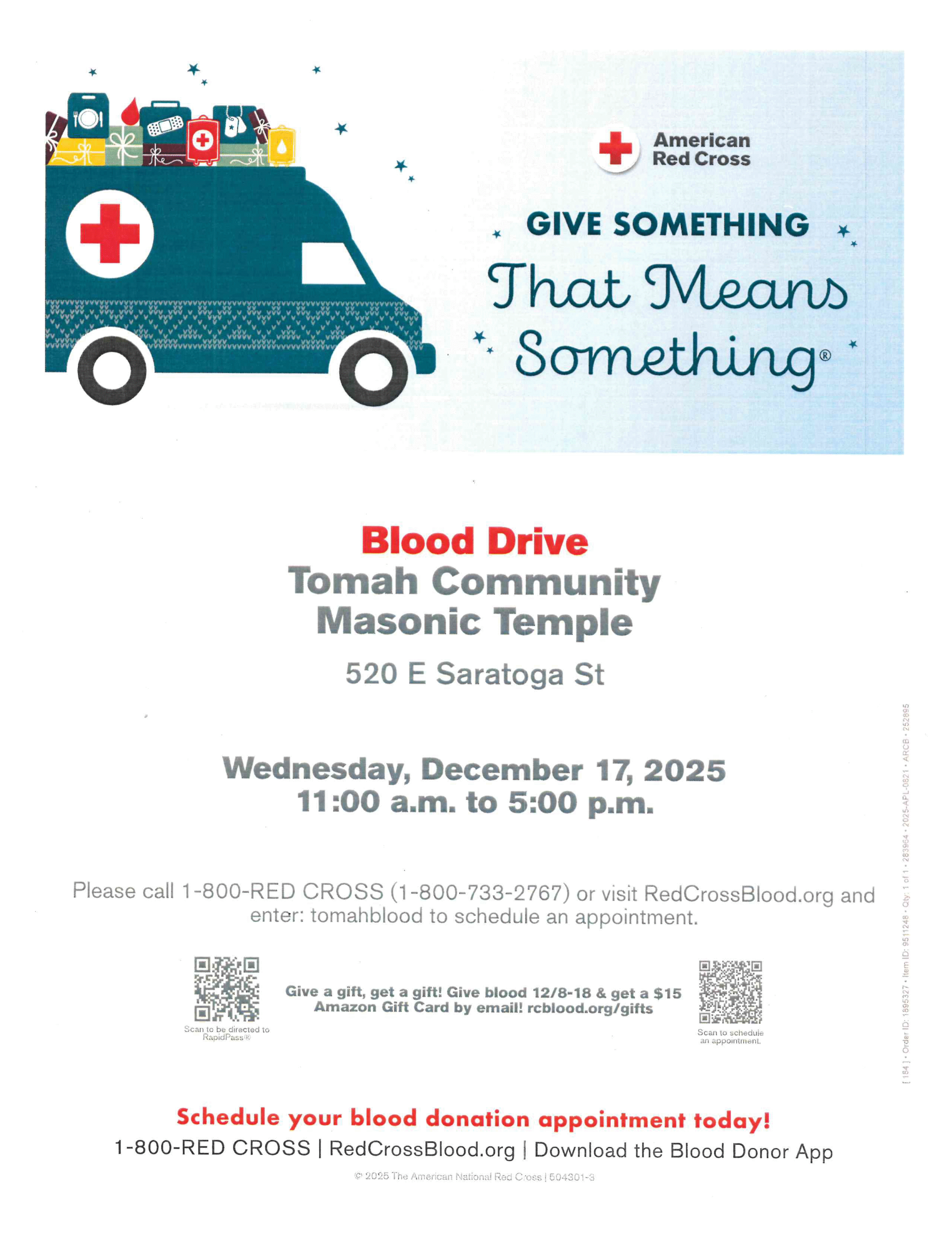 American Red Cross Blood Drive – Tomah Community Masonic Temple