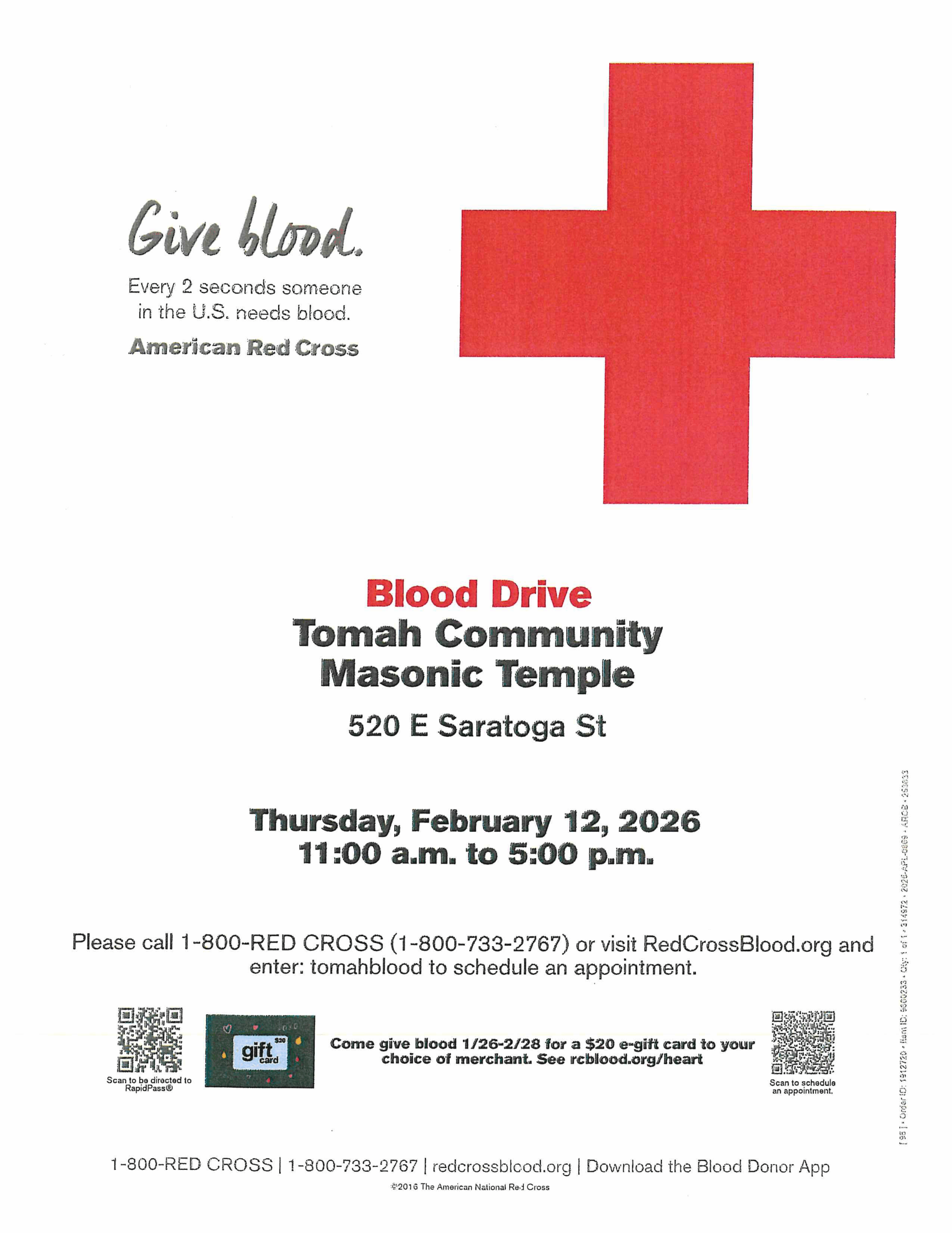 American Red Cross Blood Drive – Tomah Community Masonic Temple
