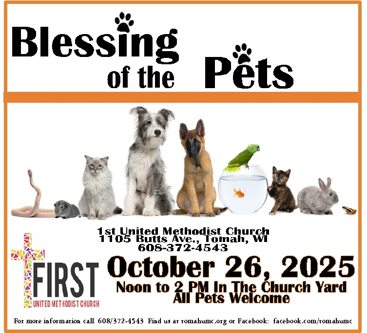 Mark your calendars for the Annual Blessing of the Pets. Pastor Fran will be Blessing pets in the church yard. All pets welcome, come and join us for this wonderful experience.