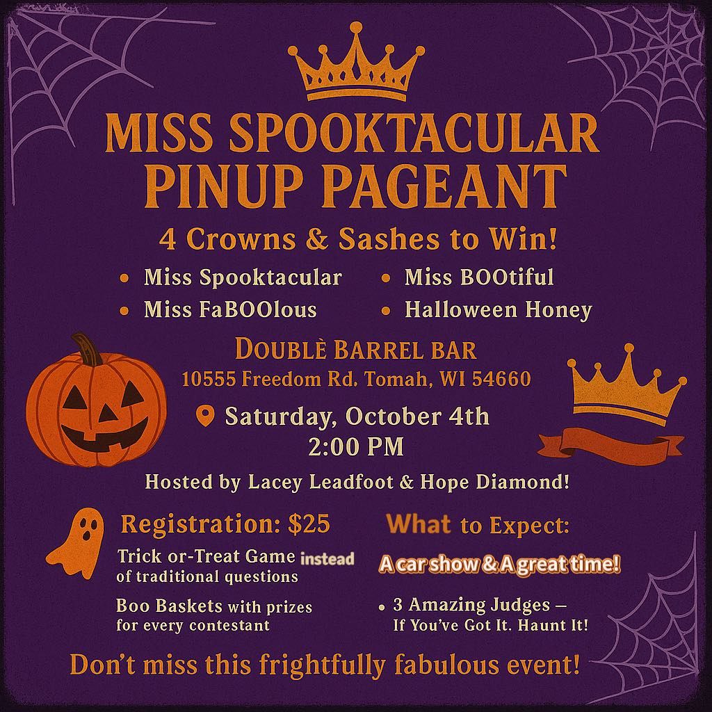 Join Double Barrel Bar for their “Miss Spooktacular Pinup Pageant” held during their 2nd Annual “Octane in October” event! Don’t miss this frightfully fabulous event!