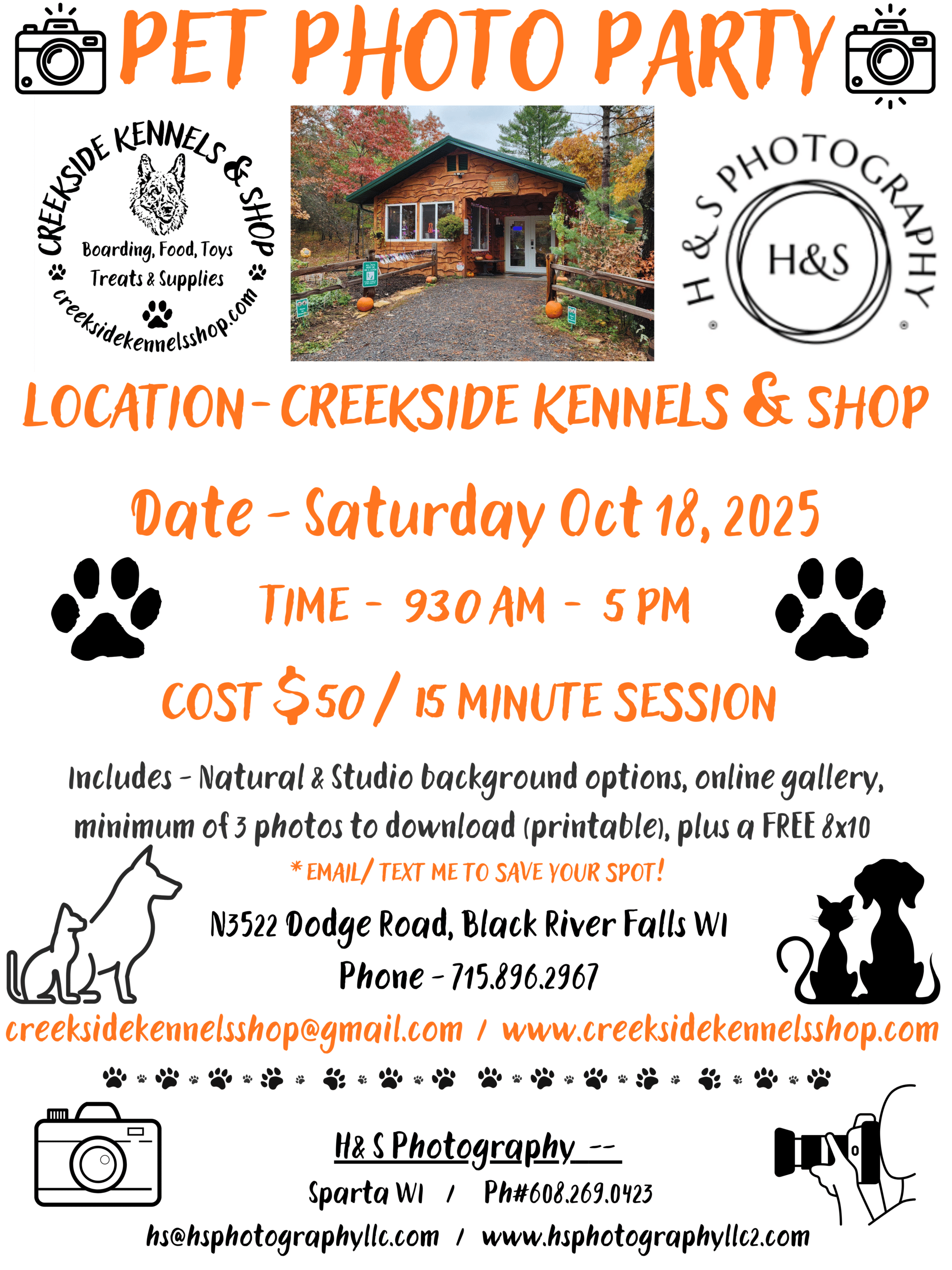 Creekside Kennels & Shop is hosting a Pet Photo Party!