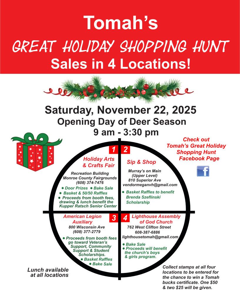 For more information, follow “Tomah’s Great Holiday Shopping Hunt” on Facebook.
