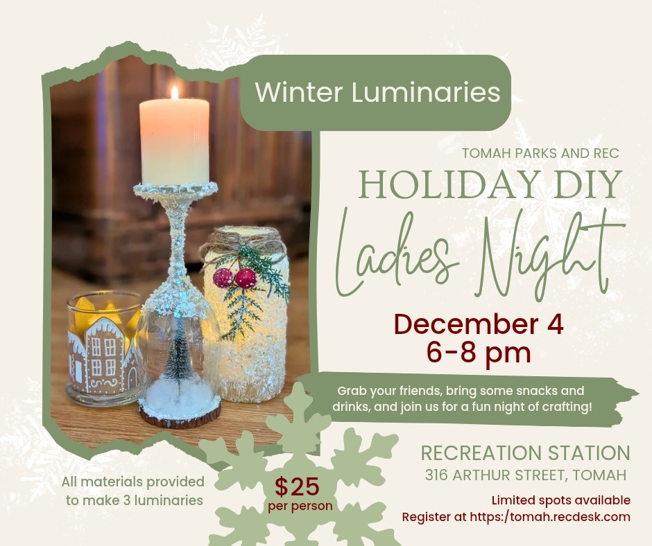 Grab your friends, bring some snacks and drinks, and join us for a fun night of crafting!  All materials provided to make 3 luminaries to take home.  Class fee is $25 per person.  Limited spots available, register HERE.